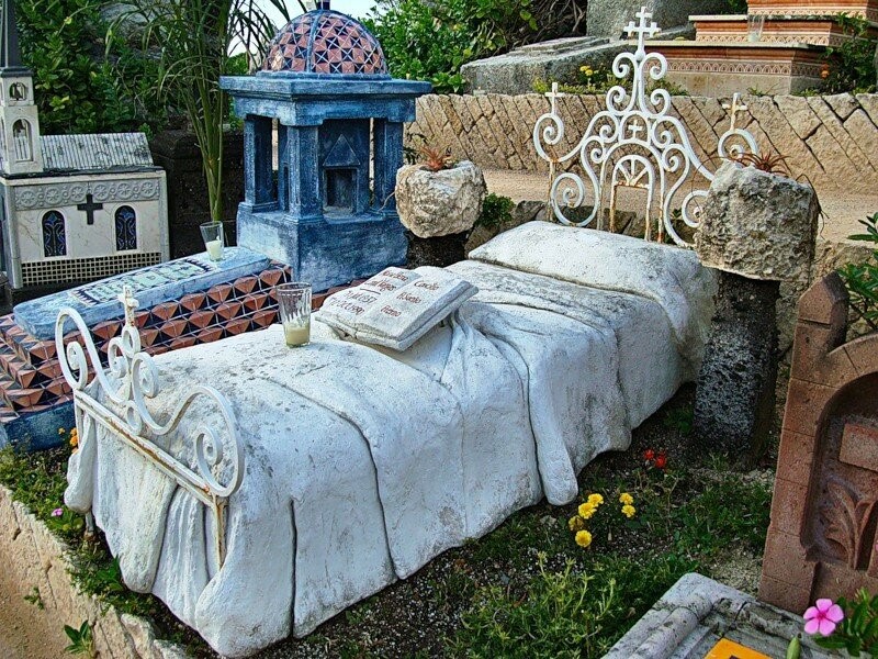 Історія надгробків така: після смерті уся сім'я і друзі покійного скидаються грошима на надгробок. Спільно обирається художник або архітектор і матеріали, якщо грошей не бракує. Якщо сім'ї бідна, то надгробок роблять спільними зусиллями самостійно, а то і зовсім близькі члени його сім'ї - власноруч. Кожен пам'ятник повинен максимально чітко відображати покійного - його характер, захоплення або професію, яку пору року його переходу в кращий світ, а також, часто спосіб його смерті, якщо та сталася передчасно. Це одночасно висловлює глибоку повагу до покійного в поєднанні з типовим мексиканським гумором.